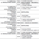 Mame mole krunicu ponedjeljkom u 10 sati. Marijina legija ponedjeljkom u 17 sati. Treće srce srijedom u 19:30 u crkvi. Ispovijed u utorak u 18 sati. Hodočašće u Mariju Bistricu uoči Velike Gospe je u subotu, 10. kolovoza. Polazak ispred crkve u 22 sata. Voditelj je gospodin Anto Miketa. Kontakt broj 092 370 9796. Ovog …
