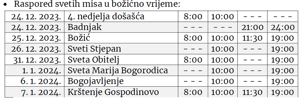 - Ispovijed: utorak i petak u 17:30.
